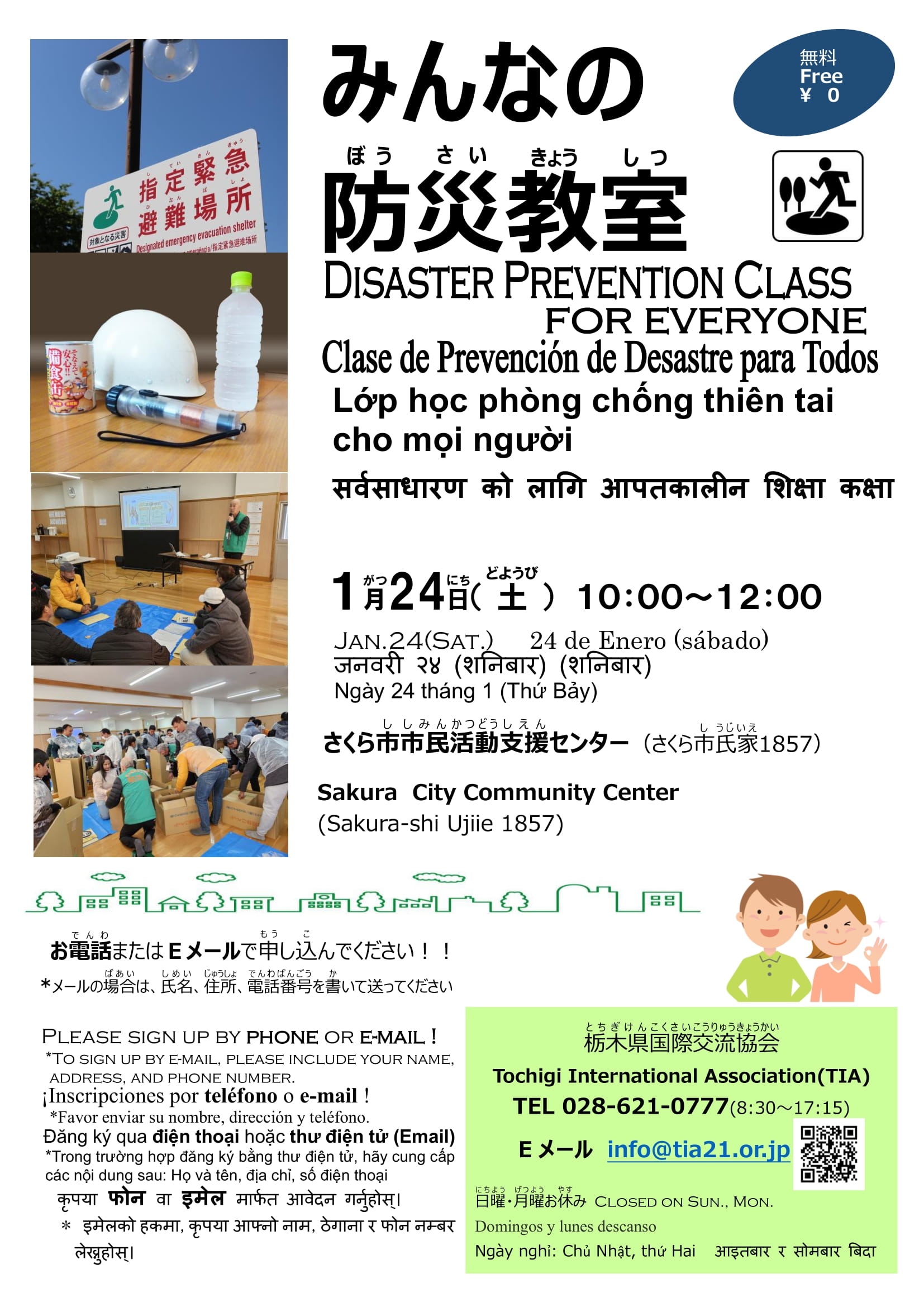 「みんなの防災教室ぼうさいきょうしつ参加者募集さんかしゃぼしゅう! 1/24(開催かいさい